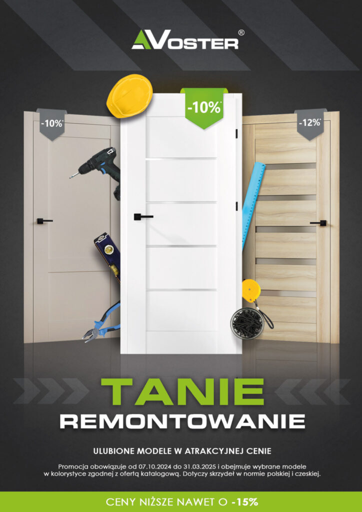 Z przyjemnością informujemy, że w FHU Rafi, zarówno w naszym sklepie w Oleśnie, jak i w nowo otwartym sklepie w Lublińcu, rusza wyjątkowa promocja „Tanie Remontowanie”. Od 7 października 2024 roku oferujemy drzwi marki Voster w atrakcyjnych cenach, z rabatami sięgającymi nawet do 15%! Promocja obejmuje najpopularniejsze modele drzwi, takie jak Vinci, Bergamo, Rumba, oraz nowość – model Fado.